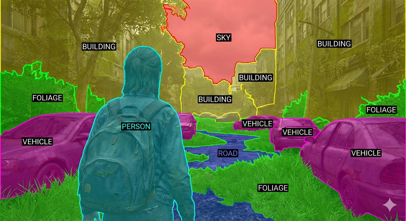Conventional game objects and direct world simulation. World models take this and generate final images.
